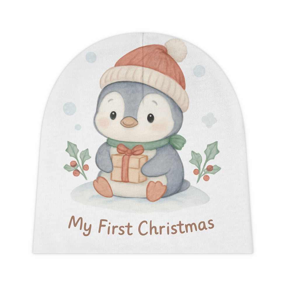 My First Christmas Baby Beanie — Cute Penguin Newborn Holiday Hat